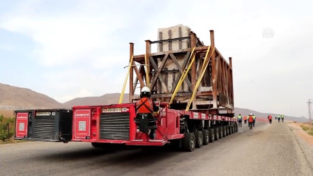 - Hasankeyf Kalesi Orta Kapı'nın en alt kısmının daimi yerine taşınması - DSİ 16. Bölge Müdürü Ali Naci Kösalı ile röportaj - Detaylar - Hasankeyf Kalesi'nin orta kapısının, iki bölümünün ardından dün SPMT aracı ile Dicle Nehri üzerindeki köprüden geçirilerek geçici koruma alanına taşınan 130 ton ağırlığındaki üçüncü bölümü Hasankeyf Kültürel Park Alanı'ndaki Arkeopark'ta hazırlanan yeni yerine nakledildi - Kapının üçüncü bölümünün SPMT aracından yeni yerine indirme işlemi 22 Ekim'de gerçekleştirilecekBATMAN (AA) - Devlet Su İşleri (DSİ) Genel Müdürlüğünce, Hasankeyf Kalesi'nin orta kapısının taşınma süreci devam ediyor.Ilısu Barajı HES Projesi Kültürel Varlıkları Koruma Kurtarma Çalışmaları kapsamında Türkiye'de geçen yıl ilk defa uygulanan projeyle, baraj gölü alanından çıkarılan 540 yıllık Zeynel Bey Türbesi, bin 500 ton ağırlığındaki Artuklu Hamamı ve 850 ton ağırlığındaki İmam Abdullah Zaviyesi'nin yeni yerine bütüncül olarak nakledilmesi tamamlandı.Bu kapsamda 1423 yılında Süleyman Han tarafından yaptırılan 400 ton ağırlığındaki Hasankeyf Kalesi'nin orta kapısının, iki bölümünün ardından dün 96 tekerlekli, kendinden tahrikli modüler sistem (SPMT) aracı ile Dicle Nehri üzerindeki köprüden geçirilerek geçici koruma alanına taşınan 130 ton ağırlığındaki üçüncü bölümü de Hasankeyf Kültürel Park Alanı'ndaki Arkeopark'ta hazırlanan 5 kilometre mesafedeki yeni yerine nakledildi.Hasankeyf Kalesi Orta Kapısı'nın geçici koruma alanındaki iki bölümü 22 Ekim'de Hasankeyf Kültürel Park Alanı'ndaki Arkeopark'ta hazırlanan yeni yerine taşınacak. Aynı gün orta kapının üçüncü bölümünün de SPMT aracından yeni yerine indirme işlemi yapılarak, üç bölüm birleştirilmiş olacak.611 yıllık Sultan Süleyman Camisi minaresinin, Hasankeyf Yeni Kültürel Park Alanı'na taşınması için başlatılan çalışma da sürüyor.DSİ 16. Bölge Müdürü Ali Naci Kösalı, Hasankeyf Kalesi Orta Kapısı'nın 130 ton ağırlığındaki üçüncü bölümünün 4 bin 200 metre ilerideki yeni yerine başarıyla taşındığını söyledi.