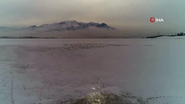 ( VAN - ÖZEL - DRONE)- Gölün donmasıyla binlerce martı aç kaldı VAN