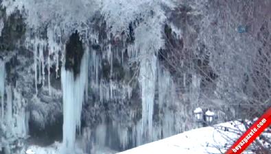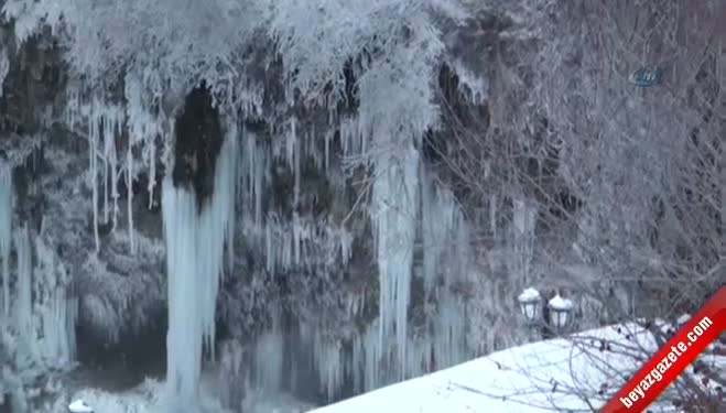 Sızır Şelalesi'nin buz tutmasıyla Boyu 3 metreyi bulan buz sarkıtları kartpostallık görütüler oluşturdu.Bölgede yaşanılan soğuk havalar nedeniyle evlerde kullanılan şebeke sularının da buz tuttuğu öğrenildi.